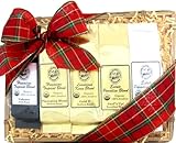 Our most popular gift item is perfect for every coffee lover! Five of our Artisan Handcrafted Organic coffee selections in one gift. 2 Oz (ground) of each of our most popular coffee selections. We include our famous GOLD II Kona Blend, our Surf's Up Breakfast Blend, Riptide Espresso Roast, Volcano Dark Roast, and Plantation Blend. All five coffee selections are nestled in a keepsake basket and tied with a great big holiday bow!