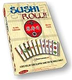 Order up! In Suchi ROLL!!, players take turns as the "Sushi Chef" by rolling the four wooden sushi dice. All "non-chef" players are dealt eight cards. After the Sushi Chef has rolled, the remaining players race to match four of their cards to what came up on the sushi dice. The first player to do so, shouts "Order up!" and places their cards in their points pile. Four special cards (Wild Wasabi, Sushi Elimination, Suchi Steal, Stinky Sushi) can be played at strategic times to increase your odds of winning. Whoever collects the most cards when the stack of Sushi cards is gone is the winner! A great family and party game that plays in about 10 minutes.